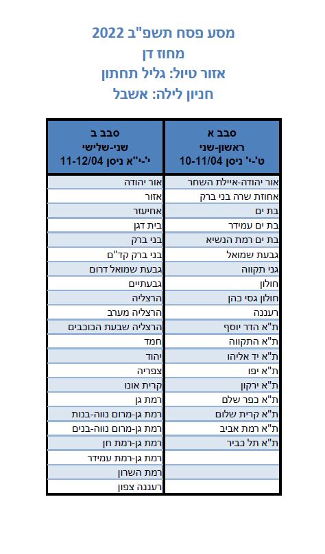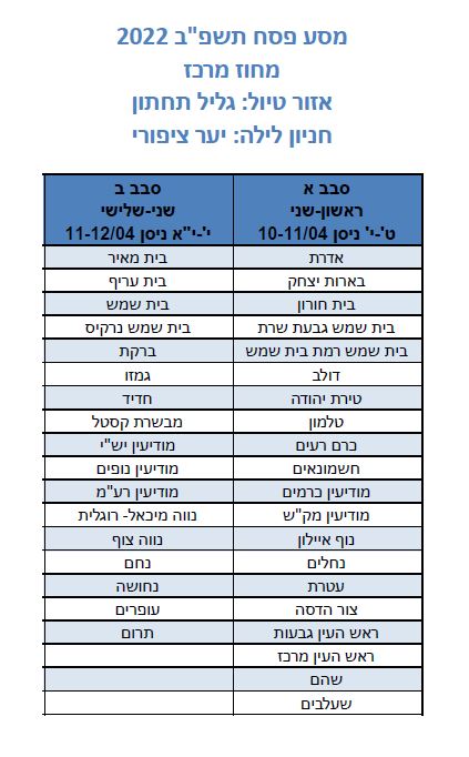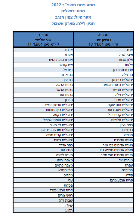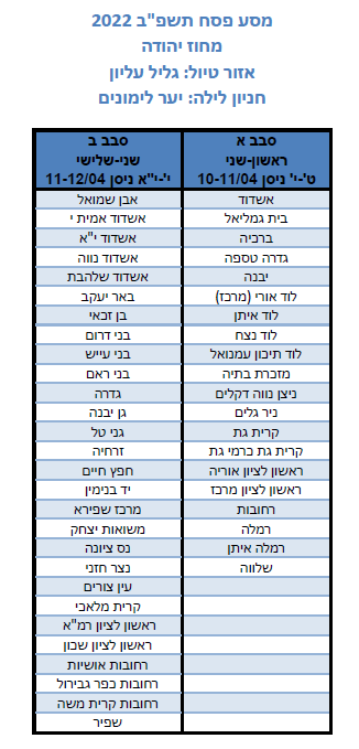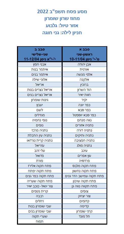 מחוזות דרום ,צפון וחיפה יטיילו בימים ראשון-שני ט'-י' ניסן 10-11/04