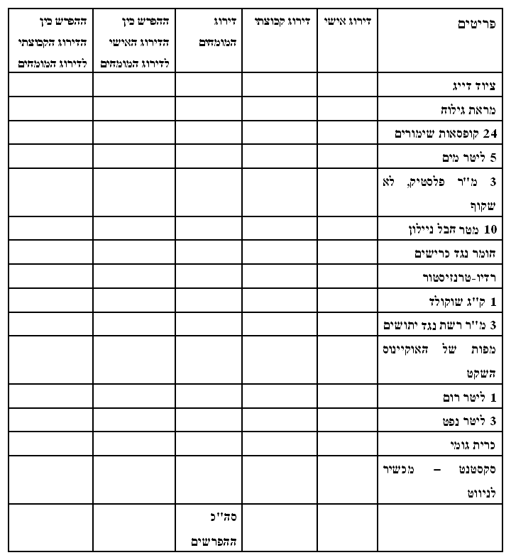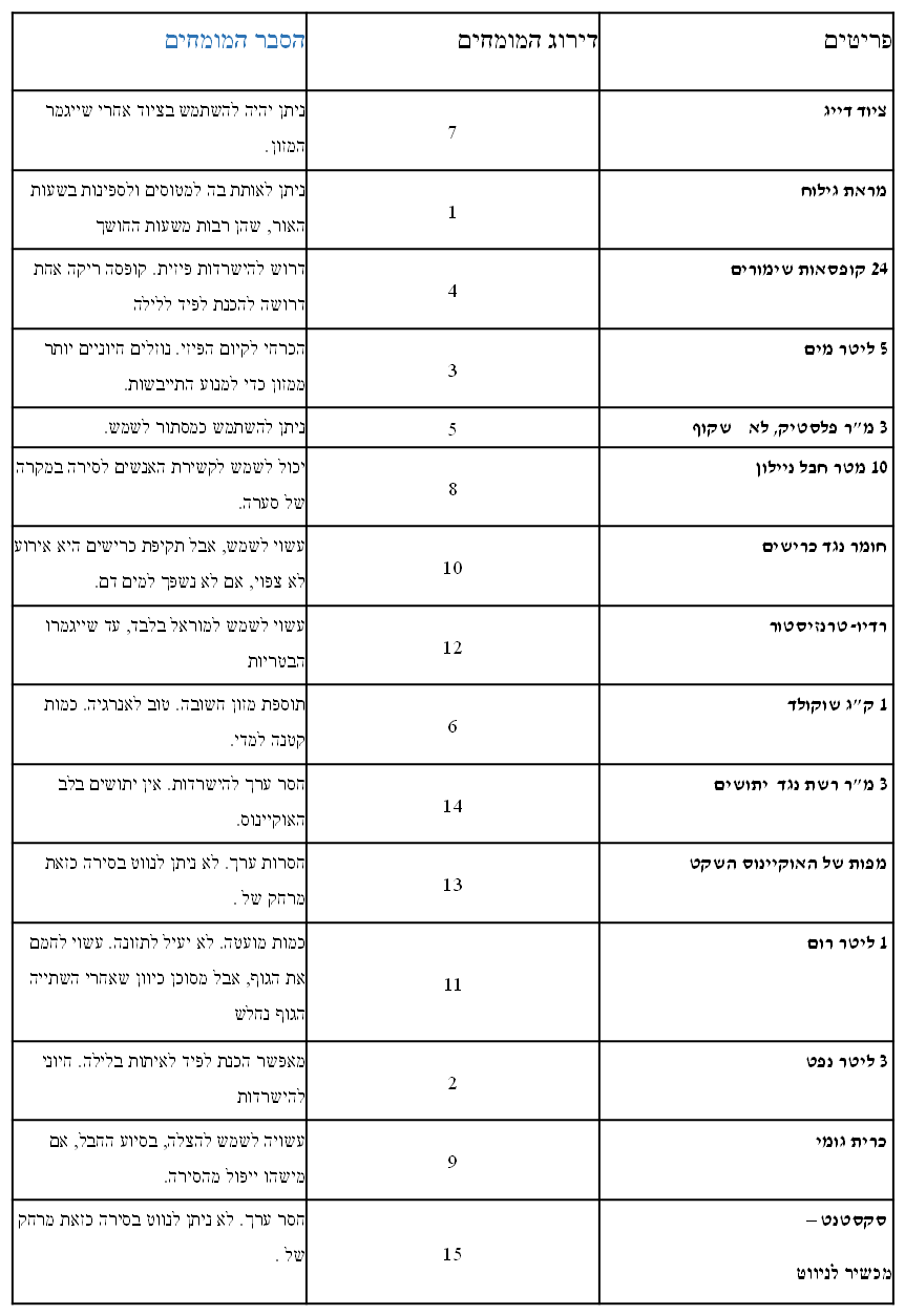 לפניכם רשימה של 15 פריטים אשר לא נהרסו על ידי האש ועליכם להחליט על סדר החשיבות של פריטי הציוד הללו, אותו תיקחו אתכם, כדי להבטיח את הישרדותכם.