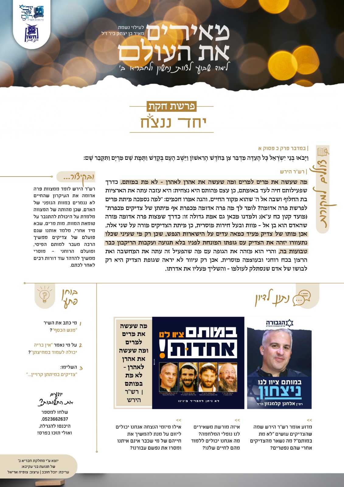 לימוד שבועי לצוותי נחשון - פרשת חקת