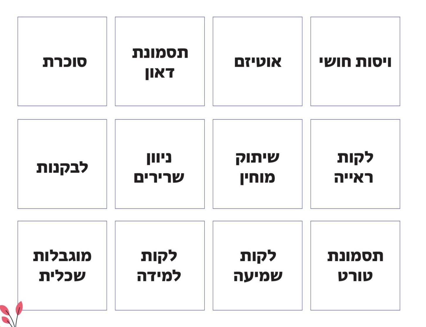 רשימת מוגבלויות וצרכים מיוחדים למשחק זיכרון אנושי (צריך להפריד בין השם להגדרה)