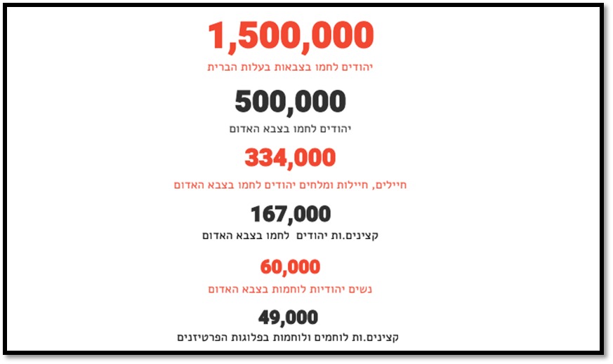 לצד הכוחות שנלחמו בחירוף נפש נגד חיית האדם הנאצית היו גם כמיליון וחצי מן הגיבורים האלה – בני העם היהודי – חיילים בצבאות בעלות הברית, לוחמים ביחידות הפרטיזנים בארצות מזרח אירופה ובשורות המחתרות האנטי-פשיסטיות במערב אירופה ובצפון אפריקה.