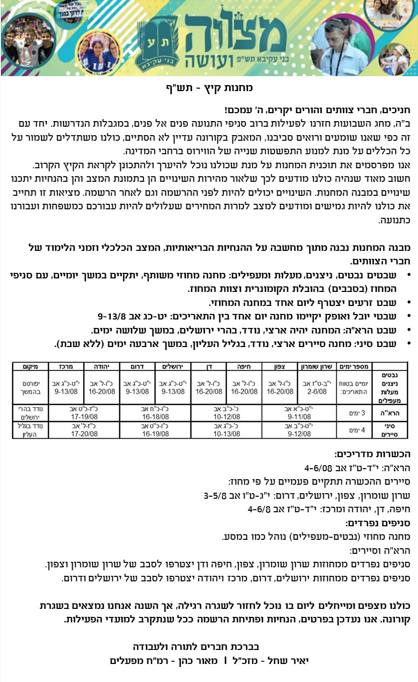 מחנות קיץ עדכון