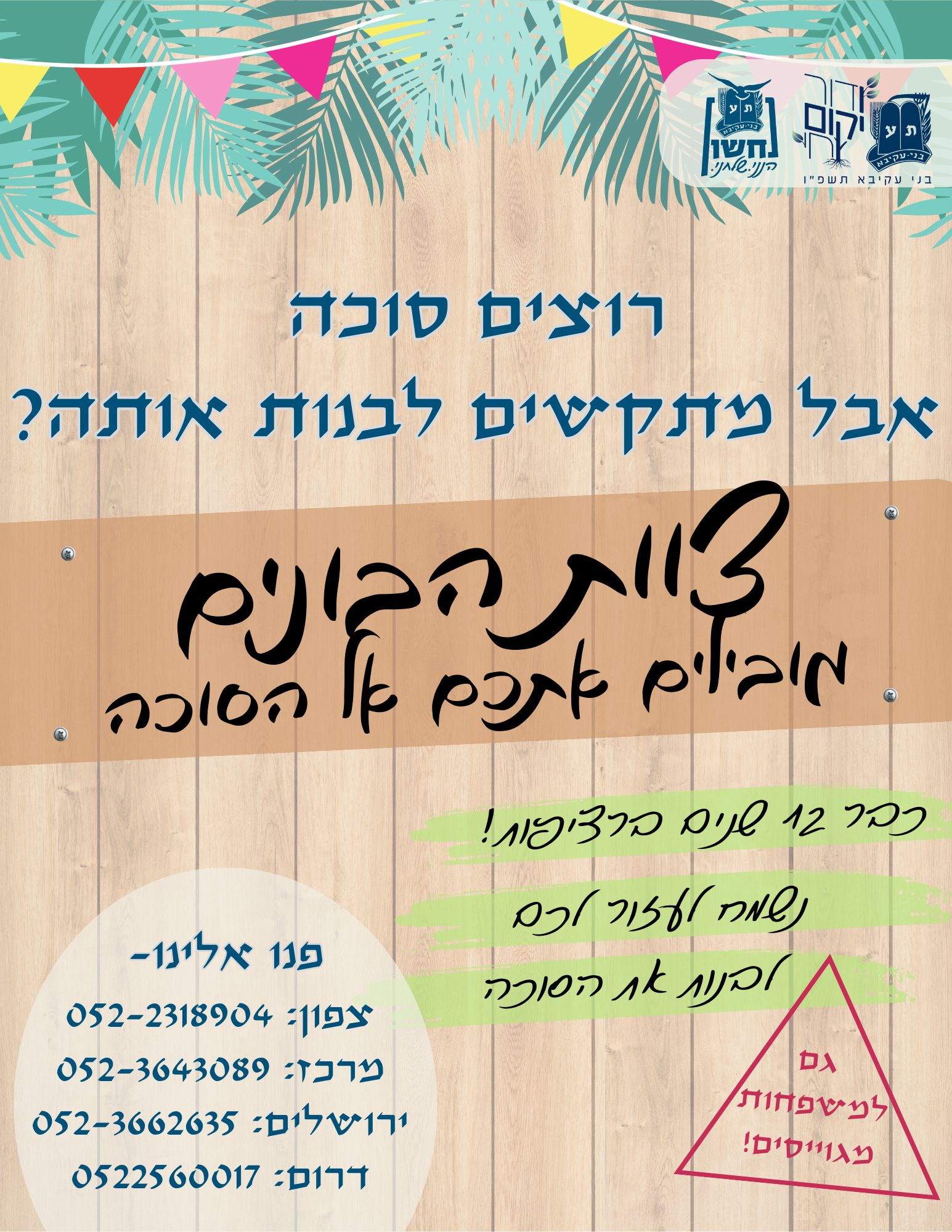 אם אינכם יכולים לבנות השנה את הסוכה בעצמכם, אל תהססו לפנות אלינו,