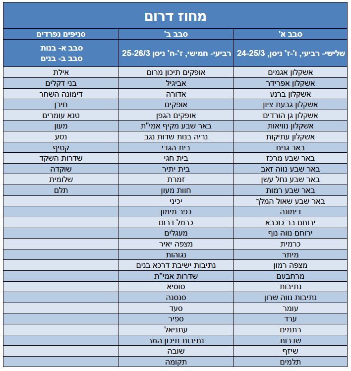 לחלוקת הסניפים לפי סבבים לחצו כאן!