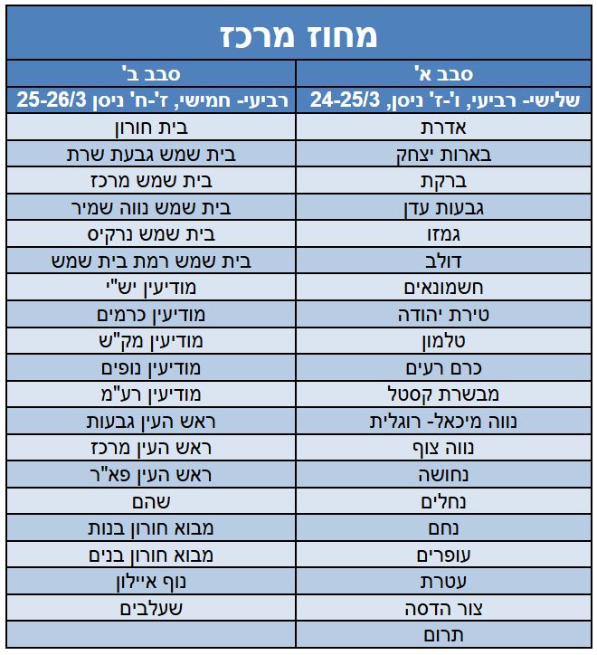 - סבב א | שלישי- רביעי, ו'-ז' ניסן, 24-25/3